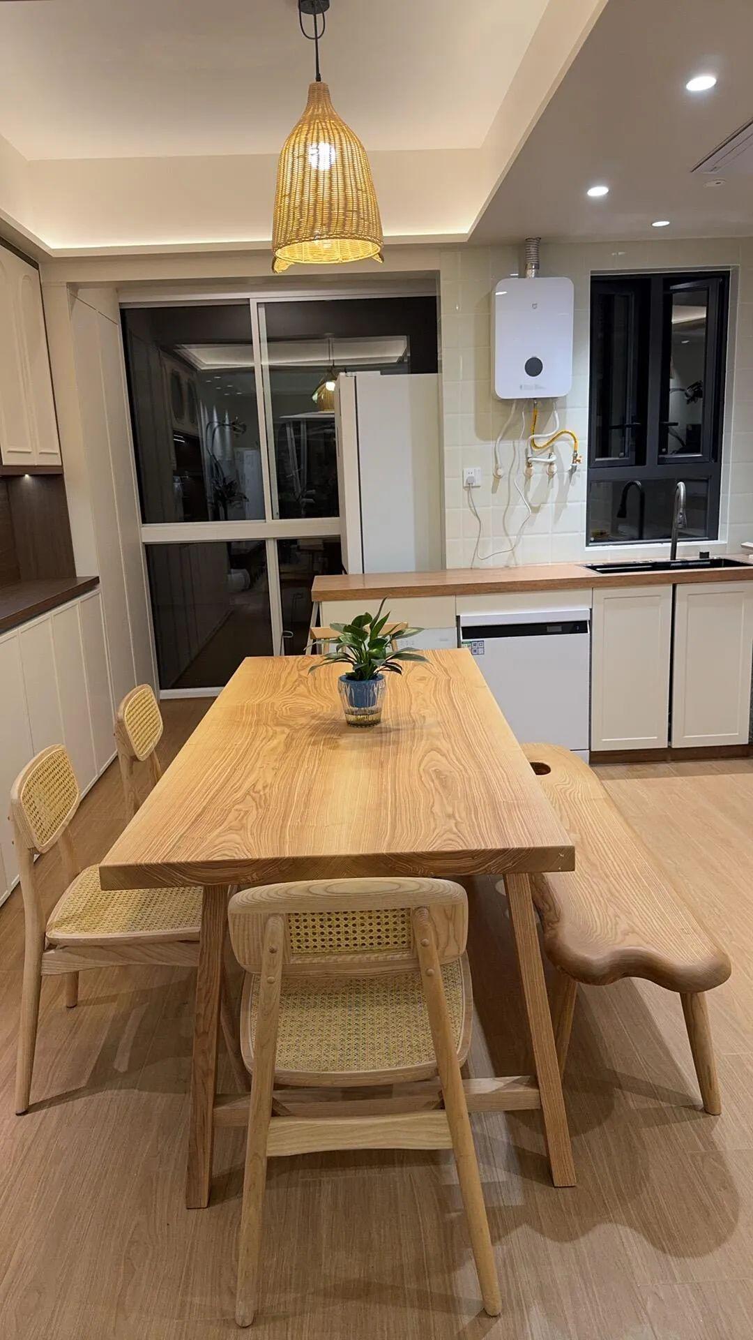 网友@海草说:精挑细选了半个月,咬牙花了七千块入手一张白蜡木长餐桌,本以为能被夸有眼光,结果却被朋友一句“土里土气”击到无语。