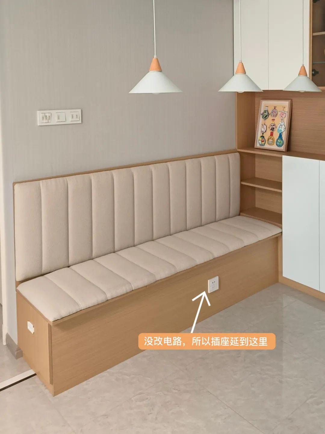 像网友@Lisa家的做法,是卡座+餐边薄柜一体设计。