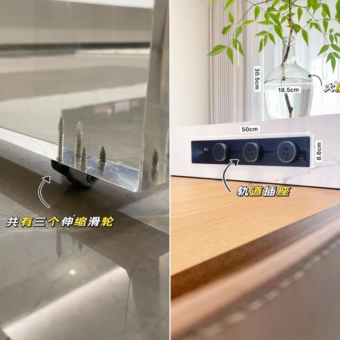 网友@一屋所有 家的岛台餐桌实用性拉满,人少时推回去餐桌长1.4米,不占空间,人多时拉出来餐桌长1.8米,能坐下8-10人。